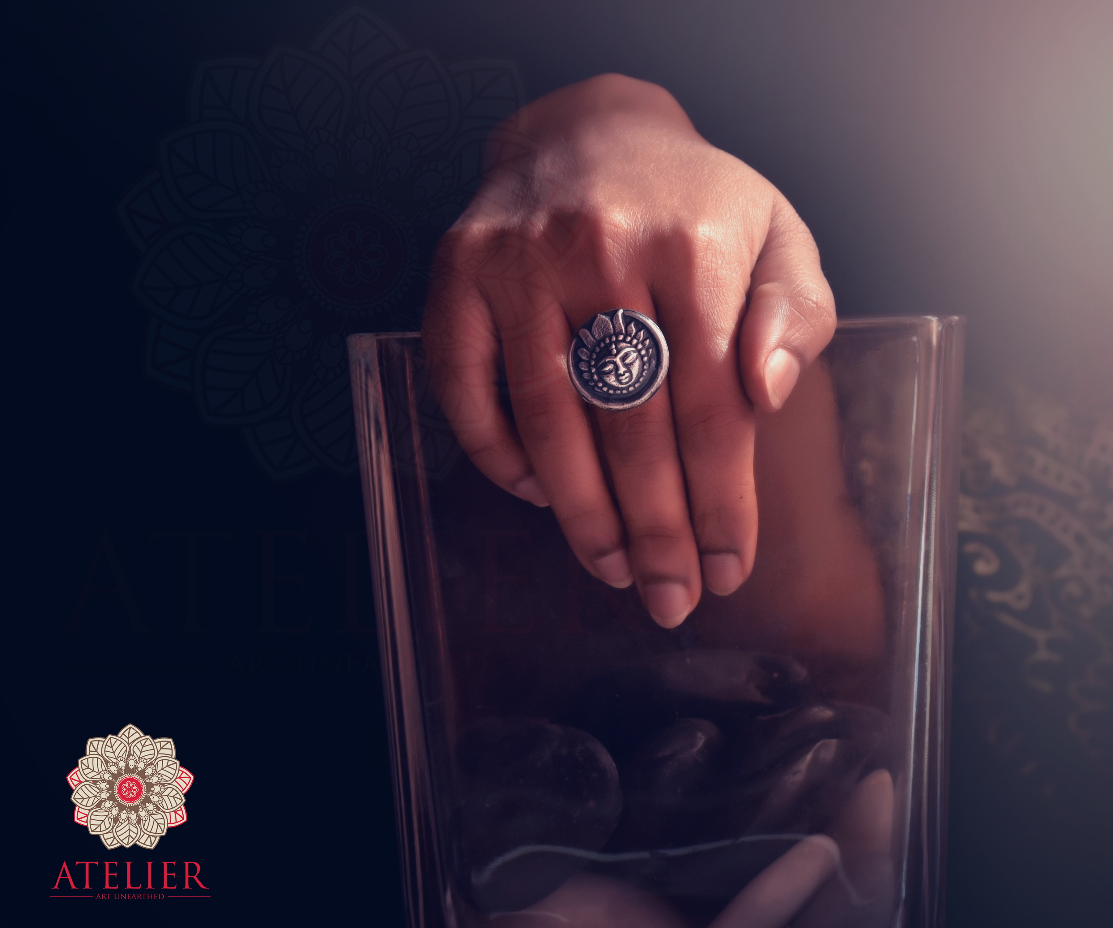 Adjuatable Silver Finger In Antique Silver colour with self work on it .
