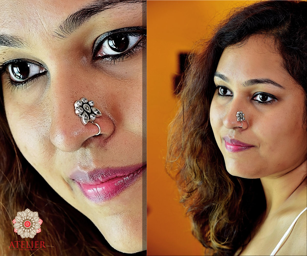 An inch clip type nose pin made on 925 silver. Stones used on it are semi precious in nature. These Clip can be worn on those who don’t have hole pierced on their nose.